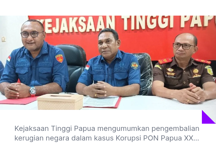 Papua,GejolakNews-Kejaksaan Tinggi (Kejati) Papua berhasil mengumpulkan pengembalian kerugian negara dalam kasus dugaan korupsi Pekan Olahraga Nasional (PON) XX Papua. Dana yang telah dikembalikan hingga saat ini mencapai angka fantastis, yakni Rp30,6 miliar. Pengembalian ini menunjukkan kemajuan signifikan dalam upaya penegakan hukum terhadap penyalahgunaan anggaran negara.