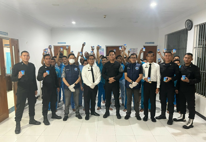 “Seluruh petugas gabungan kemudian melakukan pemeriksaan menyeluruh di blok hunian, termasuk memeriksa kamar warga binaan,kemudian kegiatan dilanjutkan test urine kepada 25 Warga Binaan dan 5 Petugas yang dipilih secara acak.
