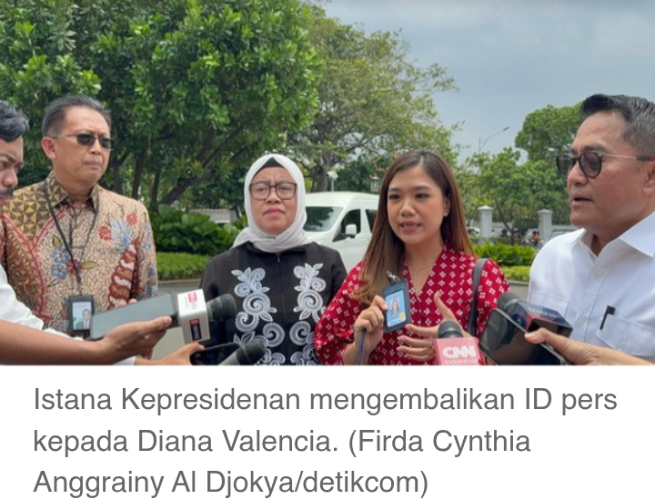 Jakarta,GejolakNews -Istana Kepresidenan mengembalikan kartu identitas (ID) peliputan khusus Istana wartawan CNN Indonesia TV, Diana Valencia.